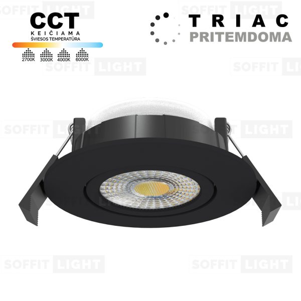 Įmontuojamas pritemdomas LED šviestuvas 6W (Juodas) CCT keičiama IP20/65 su jungtimi
